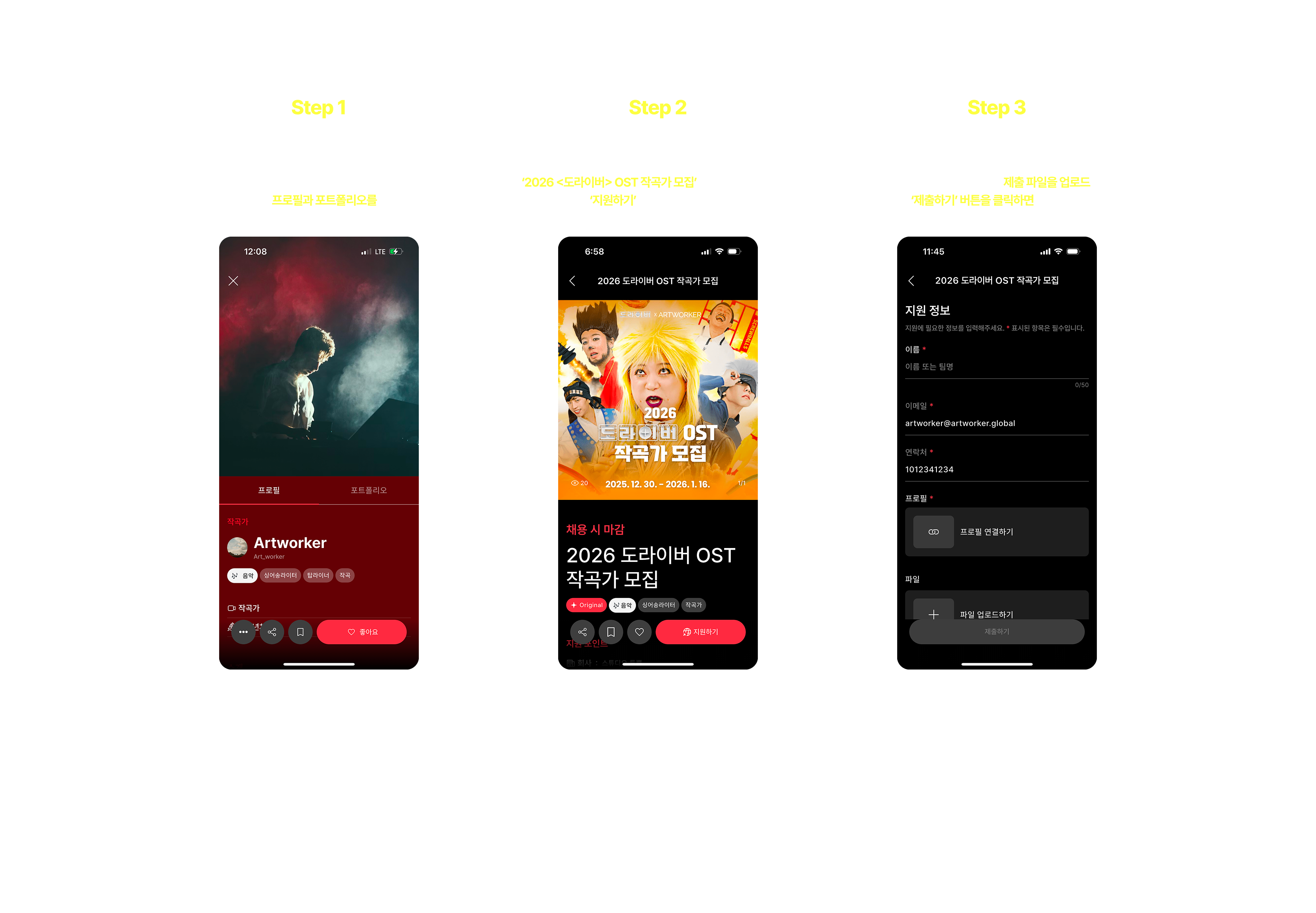 *접수는 아트워커 앱과 웹에서 모두 가능합니다.